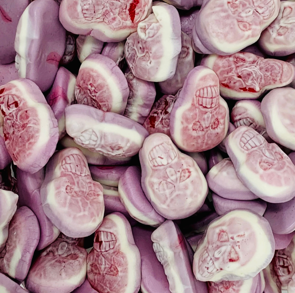 Glucose syrup, sugar, gelatine (pork & beef), humectant: sorbitols; acid: citric acid; modified potato starch, invert sugar syrup, gelling agent: pectins; flavourings, acidity regulator: sodium citrates; vegetable oils (coconut, palm kernel), glazing agents: carnauba wax, beeswax; fruit and vegetable concentrates: radish, carrot, blackcurrant; colours: E120, E133, E171.
