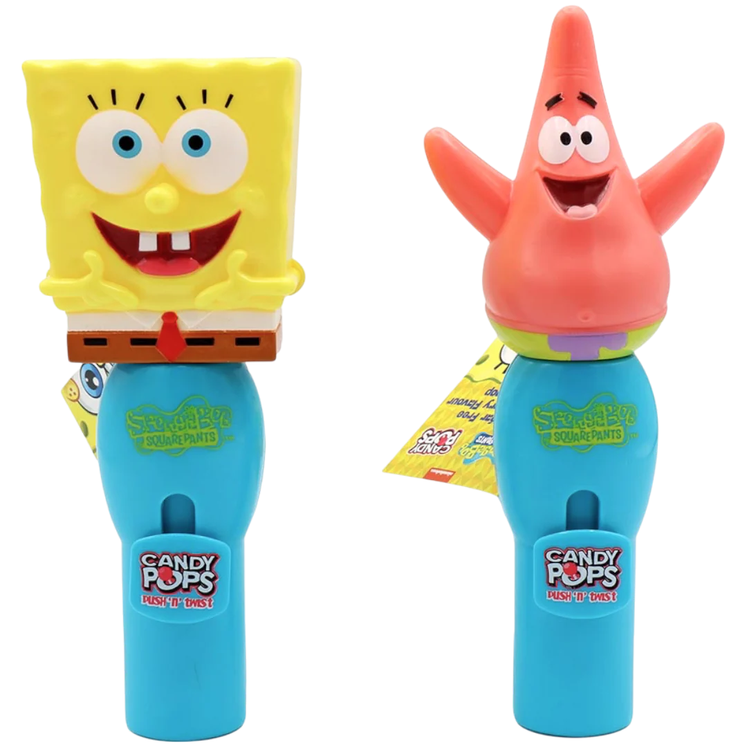 Choose between a SpongeBob or Patrick Candy Pop, each with a deliciously sweet strawberry lollipop inside a reusable case. Simply push the lever up to reveal the lollipop!