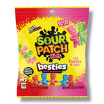 Unit price / perBesties stick together with SOUR PATCH KIDS Besties 2 Flavors in 1 Soft & Chewy Candy. Sour gummy candy featuring four SOUR PATCH KIDS holding hands to form a candy chain, with two alternating flavors and colors per piece, these SOUR THEN SWEET snacks are a fun, fruity, and flavorful foursome. Enjoy this sour candy in two different flavor pairings: redberry and blue raspberry Besties and watermelon and lime Besties