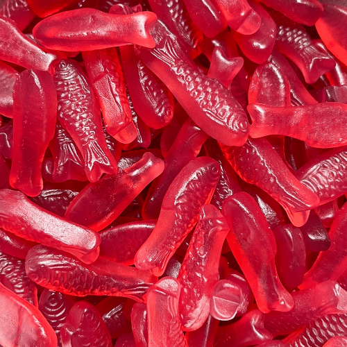 Brand new scandi cherry flavoured fish shaped vegan gummies!