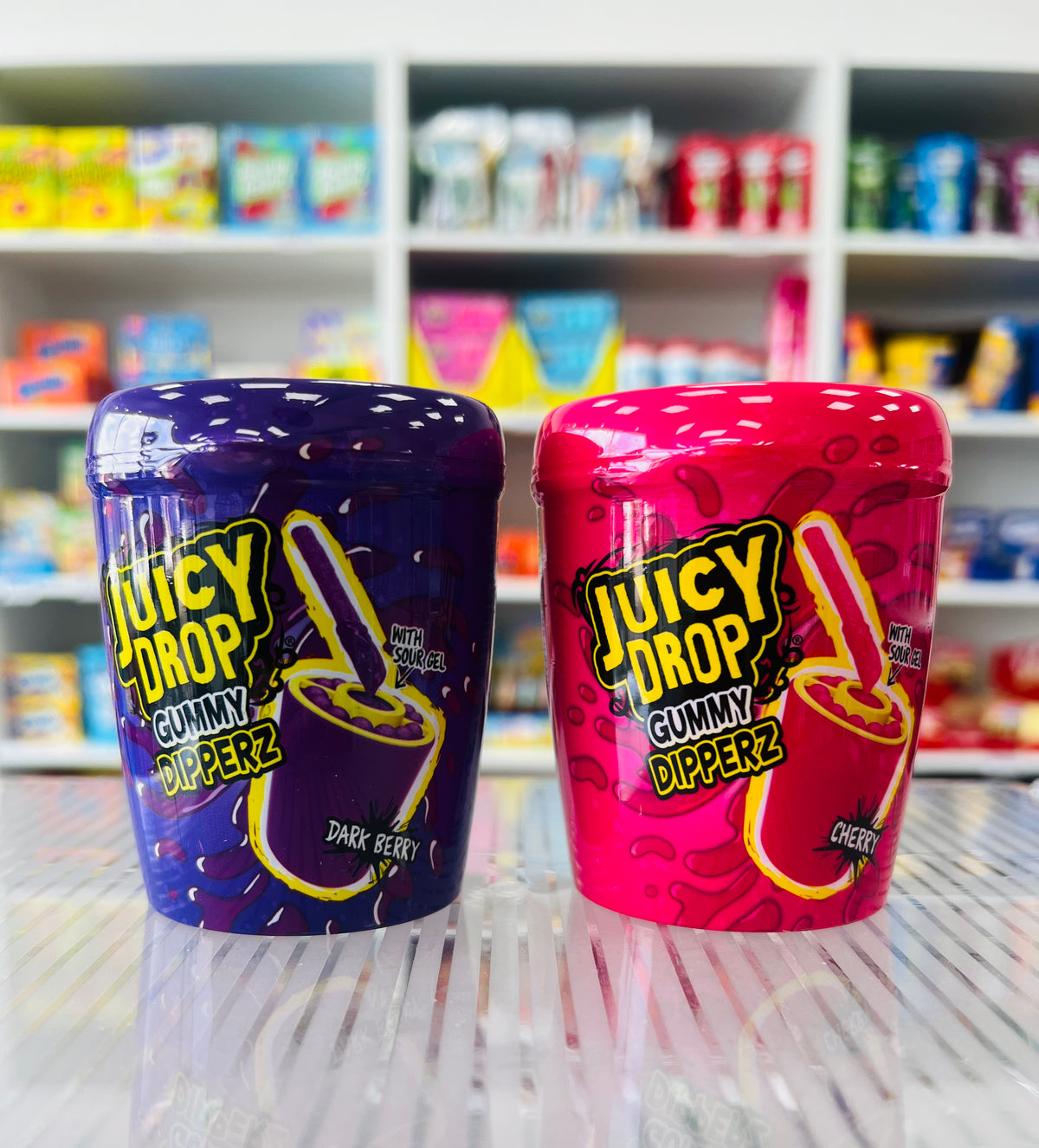 Unit price / perMix up the fun with the Juicy Drop Gummy Dipperz. Delicious candy straws that you can dip into a tangy, sour gel. With 2 super new flavours to choose from, dark berry annd cherry
